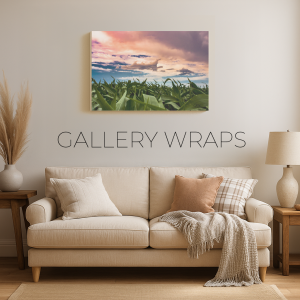 Vibrant cornfield under a dramatic, colorful sky with swirling clouds