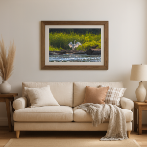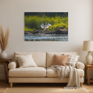 In the gentle embrace of morning light, a white heron holds court upon a timeworn log. The lush greens of the reeds contrast beautifully with its luminescent plumage, creating a dichotomy of vibrancy and tranquility. Ripples dance across the water’s surface, mirroring the delicate unfoldment of wings poised in quiet majesty. This scene captures the profound stillness of nature, a fleeting glimpse into a realm where time momentarily halts. A haven of light and grace, it whispers tales of freedom and serenity.