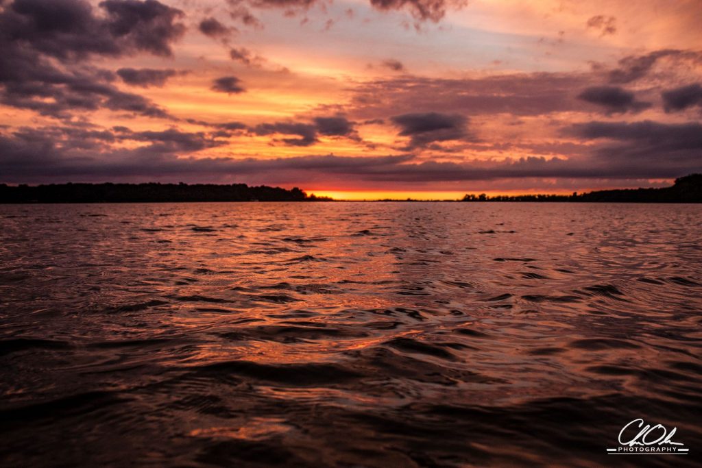 Dive into an entrancing moment where the sky kisses the earth with hues of orange and violet. As the sun dips below the horizon, the water mirrors its fiery farewell with a delicate shimmer. Dark clouds drift lazily above, framing the vibrant tapestry of the dying day. This scene captures the serene beauty of nature’s daily performance, inviting you to pause, breathe, and lose yourself in its tranquil embrace. It whispers promises of peace and continuity as day turns into night.