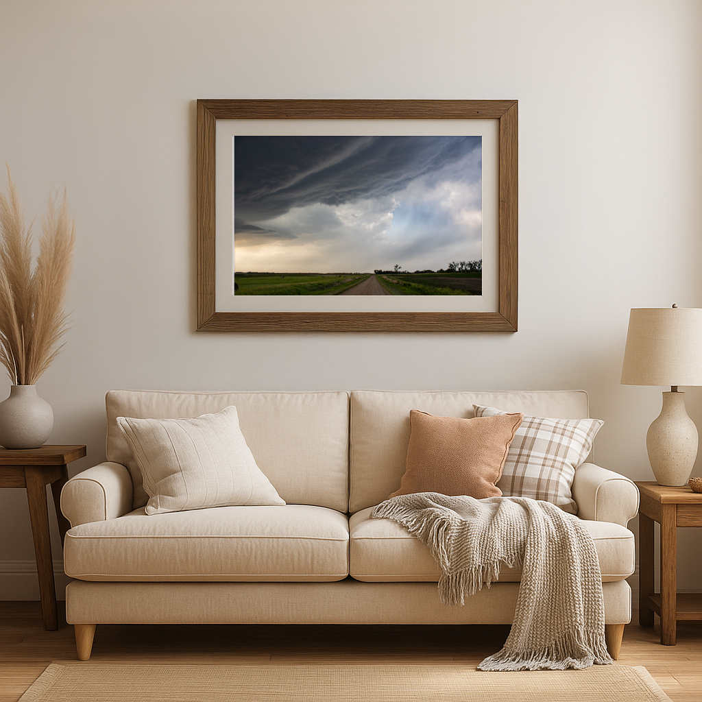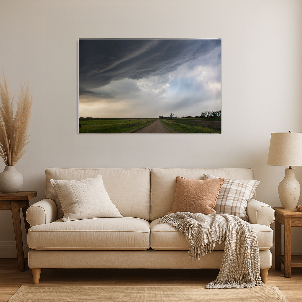 1. **Dynamic Contrast**: The juxtaposition of a dirt road against ominous storm clouds creates a striking visual contrast that symbolizes the journey of life. The road can represent the path traveled, while the towering clouds reflect nature’s unpredictable challenges, making such prints resonate with tales of adventure and resilience.
