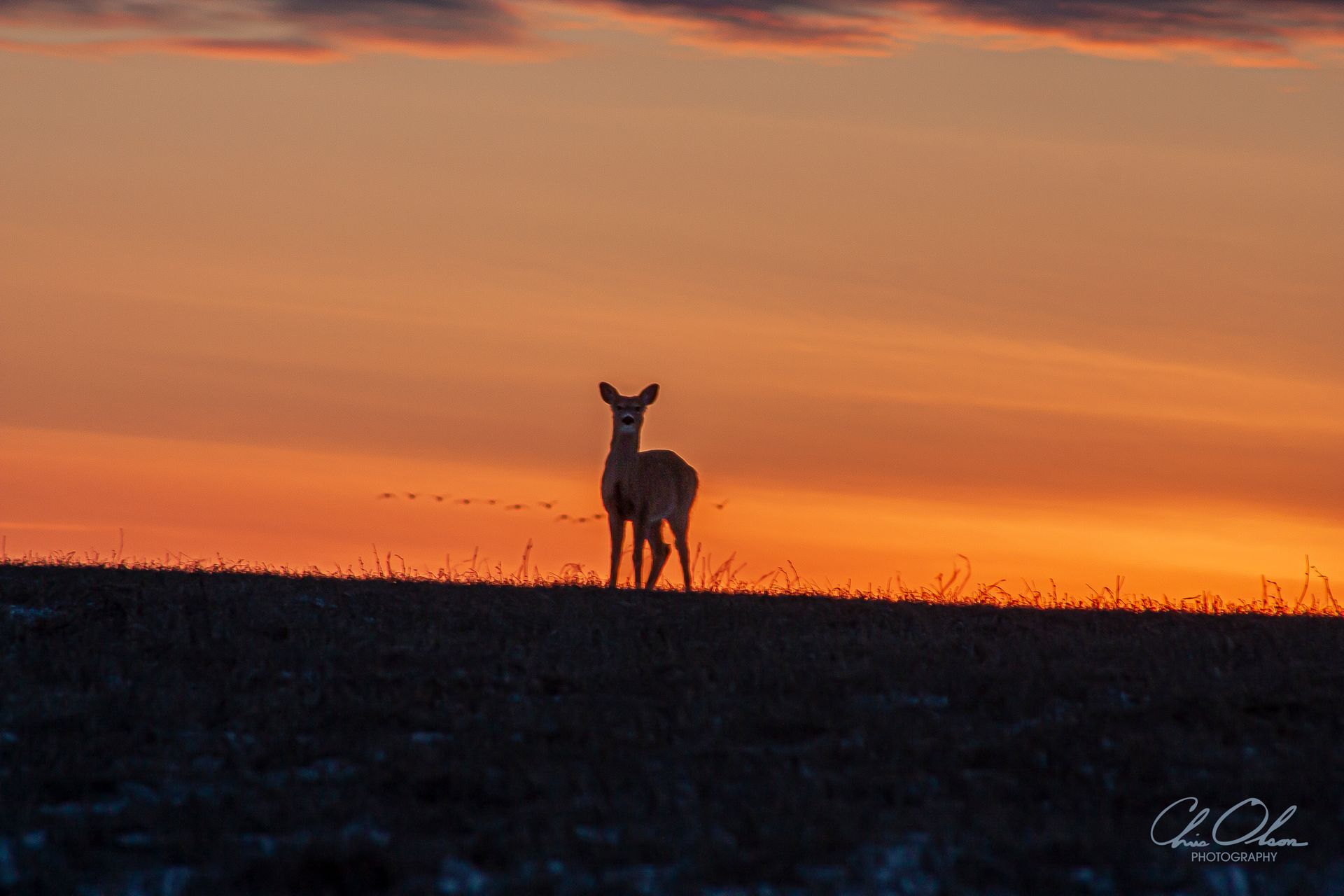 In this mesmerizing scene, a lone deer stands poised on the edge of a darkened horizon, its gentle form silhouetted against the vibrant canvas of a setting sun. The sky is alive with rich oranges and subtle pinks, painting a serene backdrop that evokes feelings of peace and solitude. The composition captures a fleeting moment of tranquil beauty, where nature’s elegance meets the calm of the evening. It’s a snapshot of a world where time feels momentarily paused, inviting the viewer into its quiet embrace. This image speaks to the harmony between light and shadow, movement and stillness.