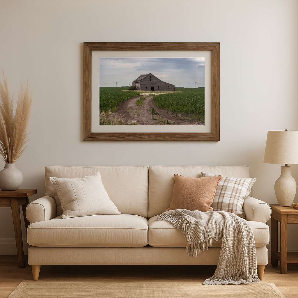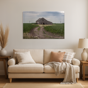 In the heart of the countryside, a weary barn leans as if whispering secrets to the encircling green fields. The clouds above hang heavy, casting a tender, diffused light that softens the antiquated wood. This lonely sentinel of bygone days tells tales not only of abandonment but of resilience. The interplay between the lush growth around it and its steadfast yet precarious posture evokes a deep sense of nostalgia. It’s a poignant reminder of the passage of time, where the beauty of decay marries the vitality of life.