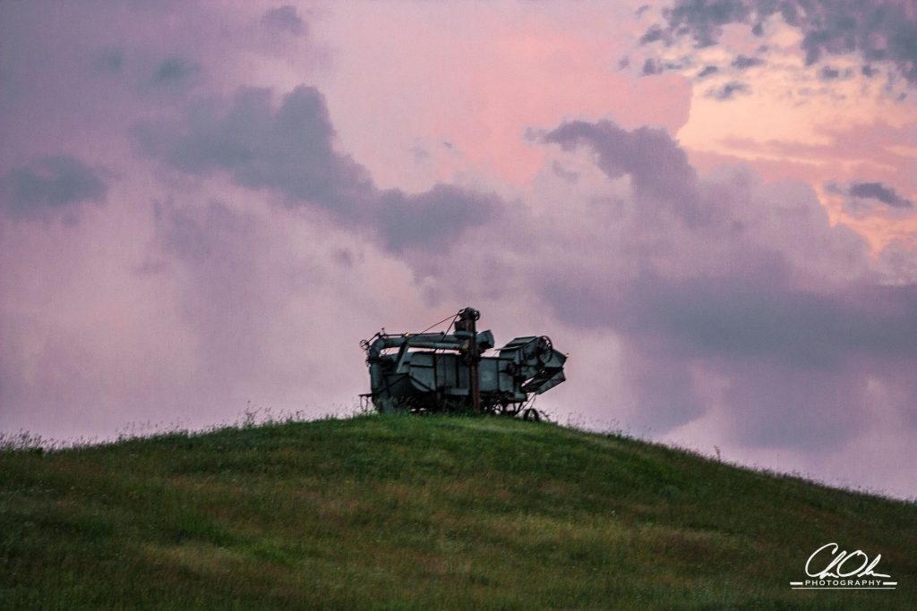 Positioned near the highest point in Grant County, Minnesota, this old threshing machine becomes more than just an artifact; it is a symbol of transition from traditional to modern farming techniques. It sits amidst the serene backdrop of the highest elevation in the county, which offers a unique vantage point for capturing both the machine’s intricate design and the expansive rural vistas it once served.