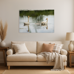 2. **Monogamous Life Partners**: Swans are known for their lifelong monogamous pair bonds. Photographing a swan family not only captures the beauty of the birds but also tells a story of enduring partnership and familial devotion, appealing to collectors interested in the narrative and emotion behind the art.