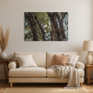In the soft embrace of the forest, a lone bird holds its vigil. The delicate treetops sway gently, their emerald leaves unfurling like whispers in the breeze. Amidst this serene tapestry, the bird stands with quiet dignity, its presence a gentle reminder of natures profound simplicity. Light filters softly through the canopy, creating an interplay of shadows and highlights that dance upon the bark. This image captures a moment of peaceful solitude, where the natural world reflects a tranquil harmony.