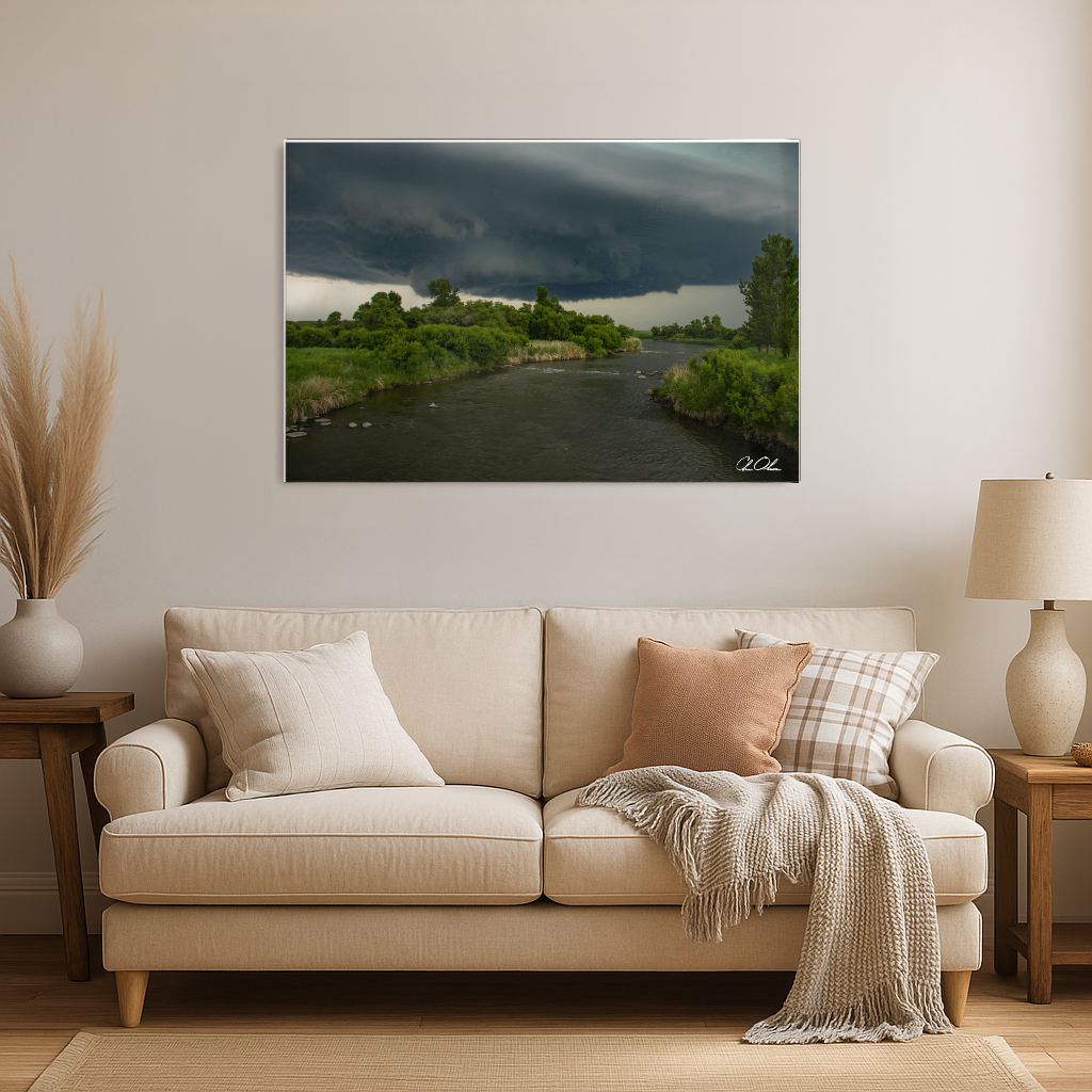 A tornadic supercell tightens over the James River near Jamestown, North Dakota on June 20th. The violent core of the storm contrasts sharply with the calm, winding wateran eerie balance of serenity and chaos as nature prepares to unleash its fury.