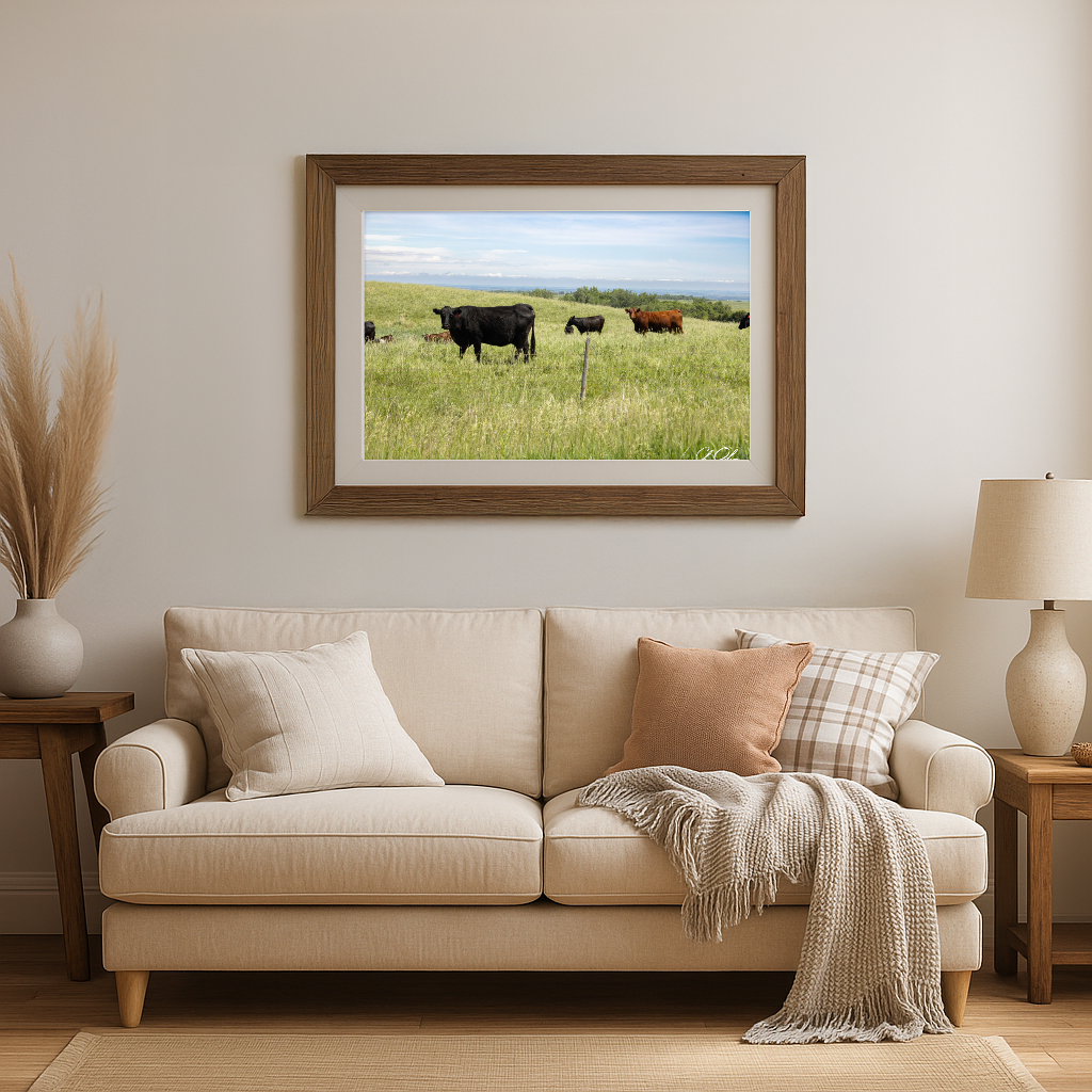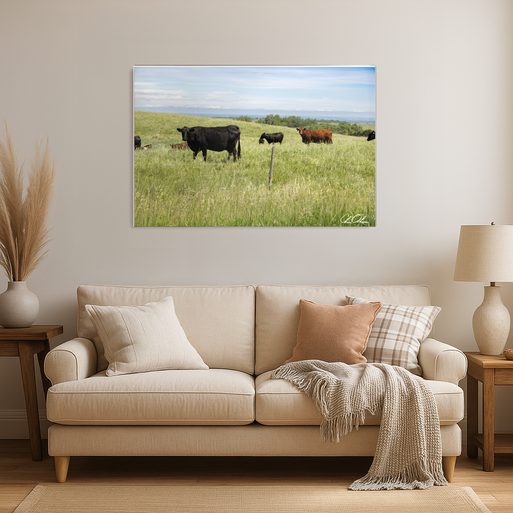 3. **Artistic Compositions**: The serene, open landscapes where cows graze provide dynamic canvases for photographers. The contrast between the animals’ soft forms and the expansive skies or lush fields makes for striking compositions. Such imagery can appeal to those who seek artworks that blend the elegance of nature with the beauty of bucolic life.